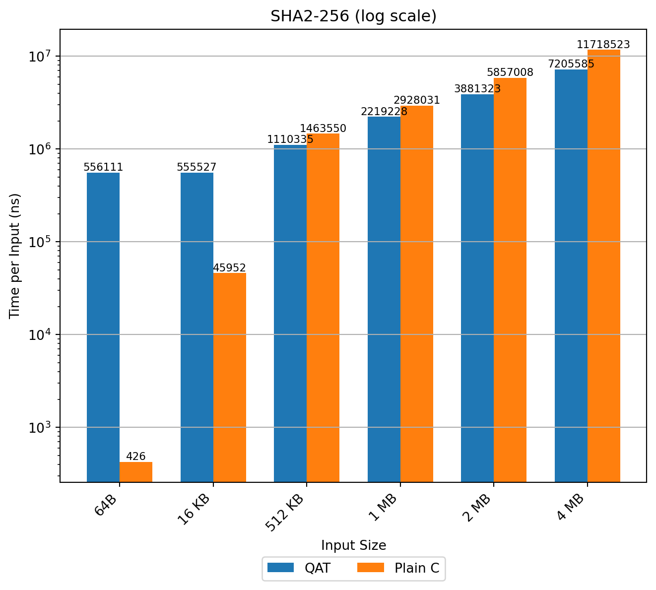 In this post, I show that QAT hashing is not a good fit for post-quantum signature schemes such as LMS, XMSS, and SLH-DSA: the accelerator only wins for large, contiguous inputs, while these schemes issue many small, sequential hash calls. Instead, QAT remains best suited for bulk TLS/IPsec/storage workloads and asynchronous offload.